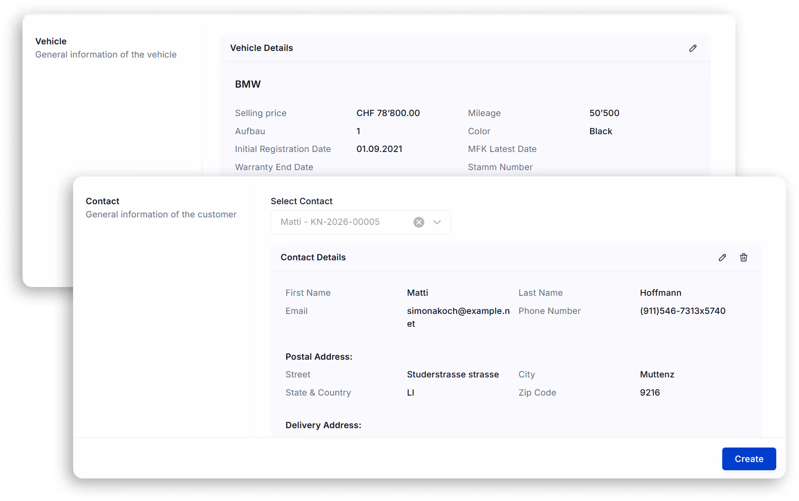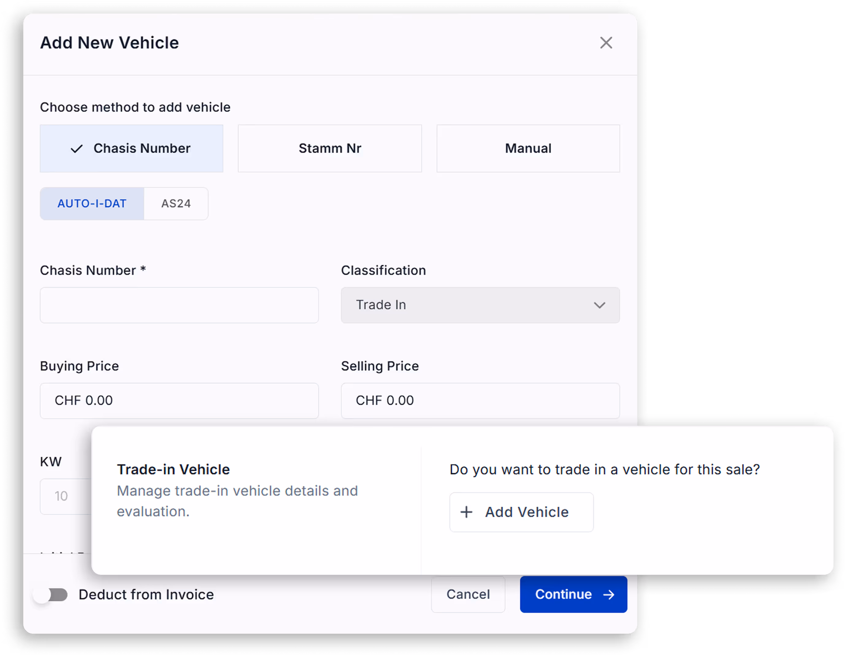 With one click on Sell, a vehicle is moved from availability into an active sales flow, without copying data or switching tools.